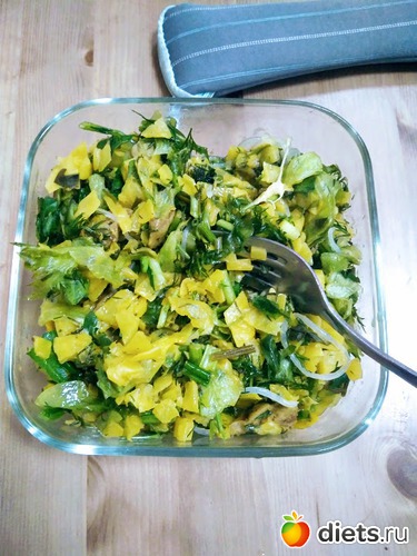 Любимый обед. Капуста с куркумой, филе, зелень, сыр и масло.