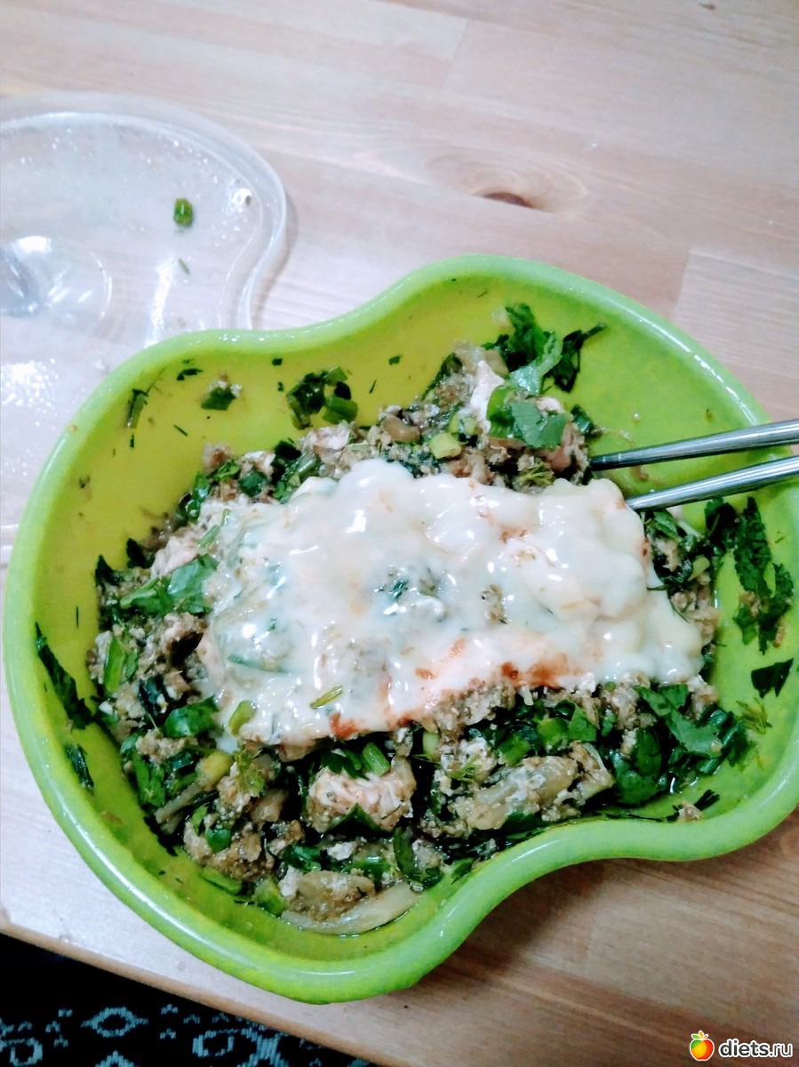Любимый обед. Капуста с куркумой, филе, зелень, сыр и масло.