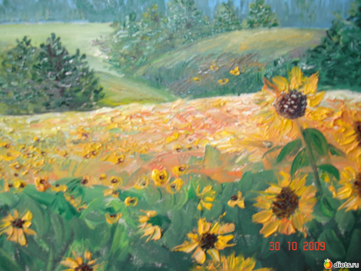 масло - подсолнухи, нарисованные дома, альбом: МОИ РАБОТЫ