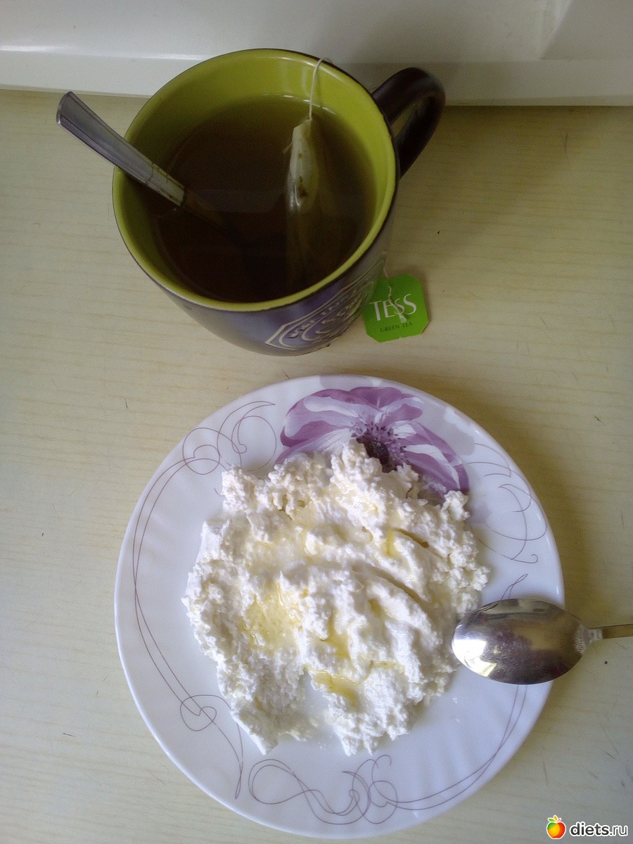 Завтрак 04.06.2018 (полпачки обезжиренного творога, ложка меда, зеленый чай без сахара), альбом: Дневник питания