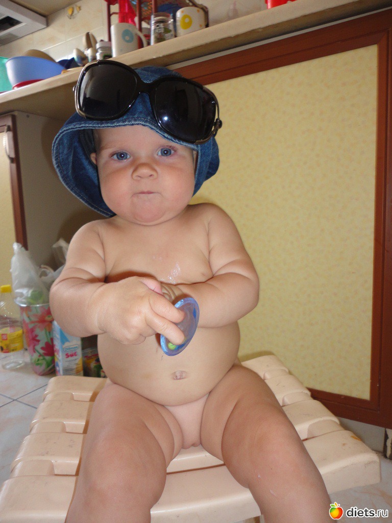в маечке и носочках старшего товарища (мальчика 4 лет)