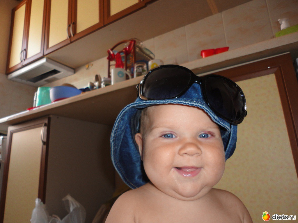 в маечке и носочках старшего товарища (мальчика 4 лет)