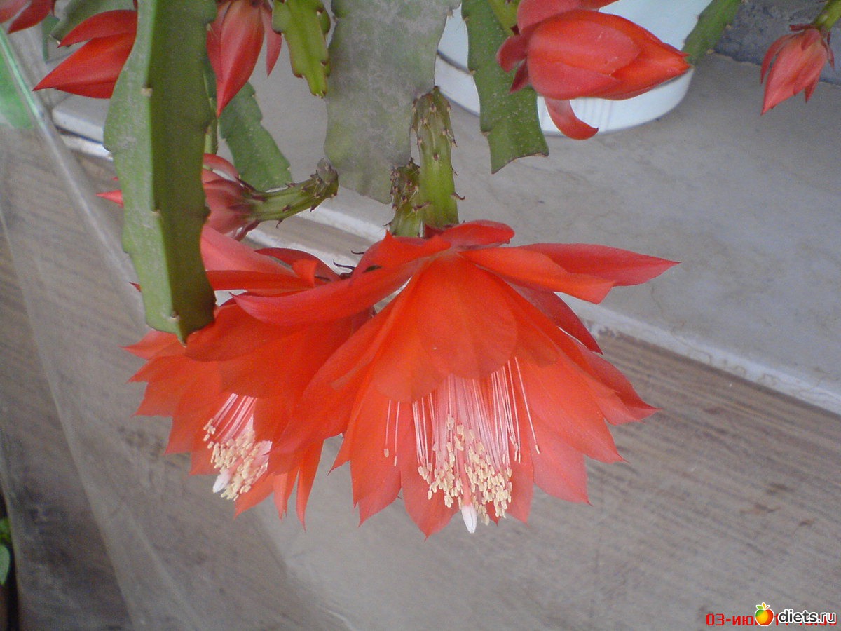 Колючий неприхотливый зигокактус. Все время стоит на балконе и каждый год цветет.
