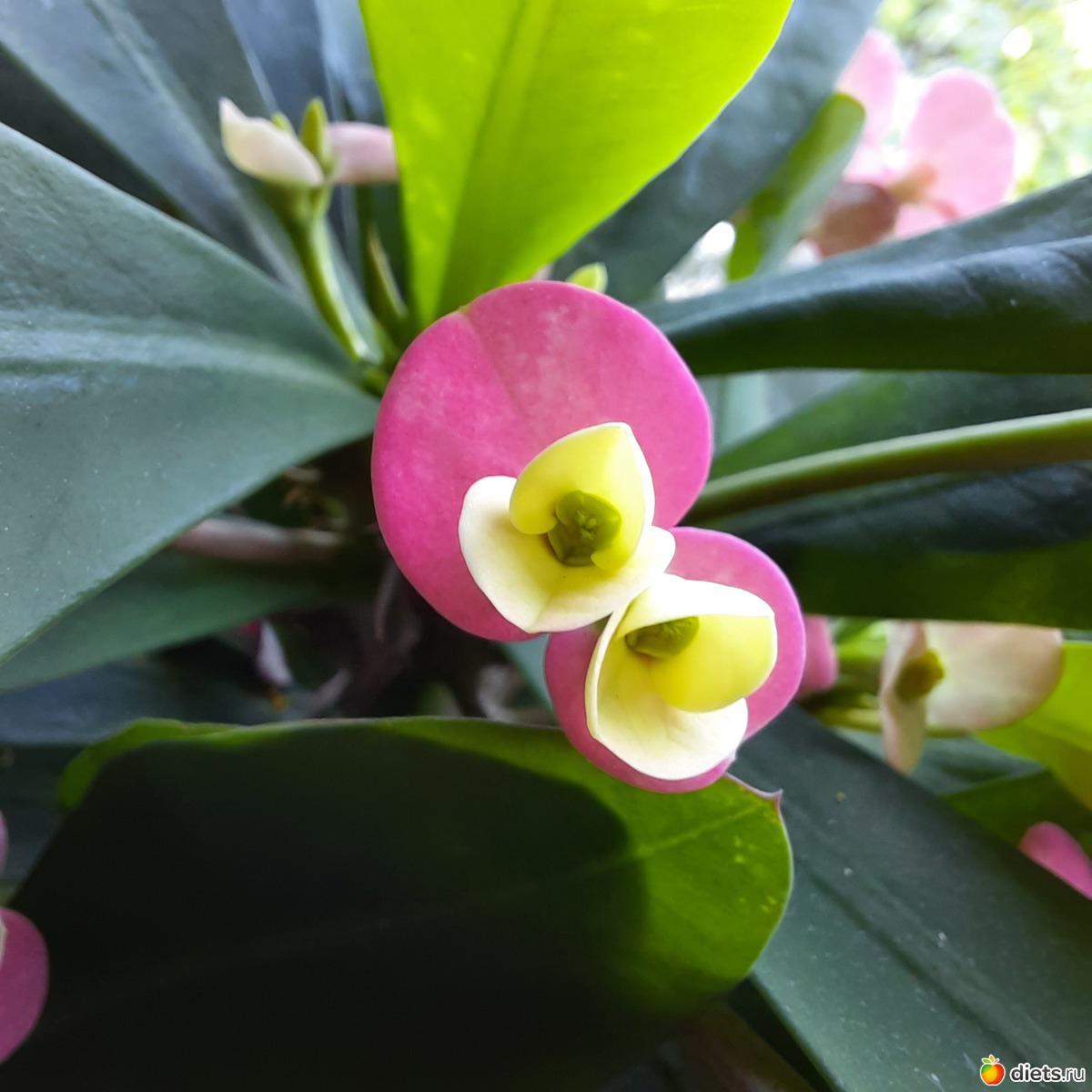 Очень интересные у него цветы. Такое чувство, что восковые, тверденькие красные лепестки и воздушные маленькие.