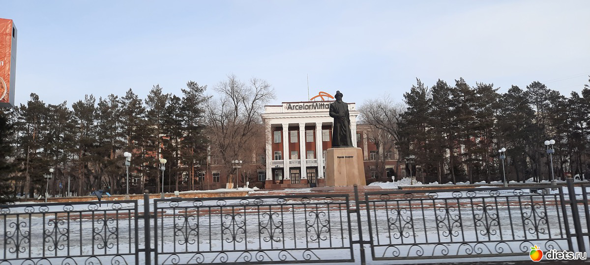Акимат Караганды (мэрия) и памятник казахскому поэту XVII века Бухар Жырау. В честь него назван центральный проспект города, альбом: Наши поездки-путешествия
