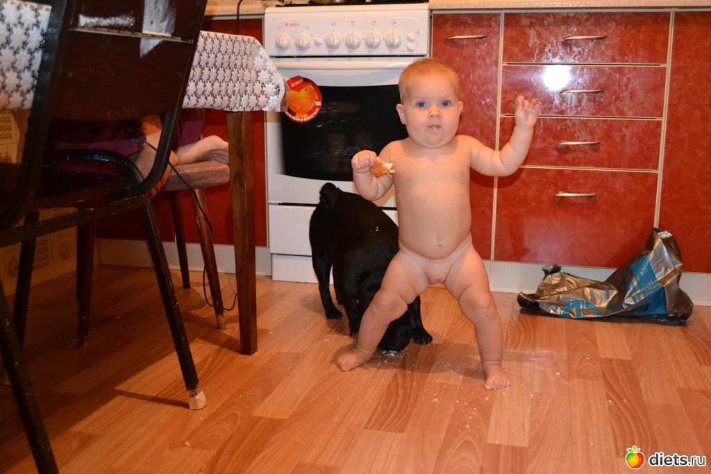 в маечке и носочках старшего товарища (мальчика 4 лет)