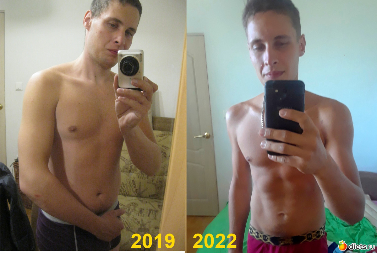 слева пухлик Чмоня весом под 90, спустя год -25% веса