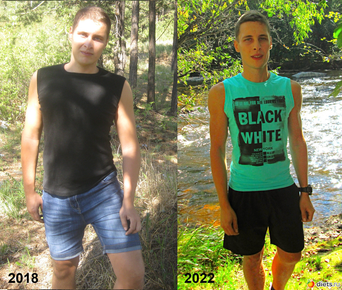слева пухлик Чмоня весом под 90, спустя год -25% веса