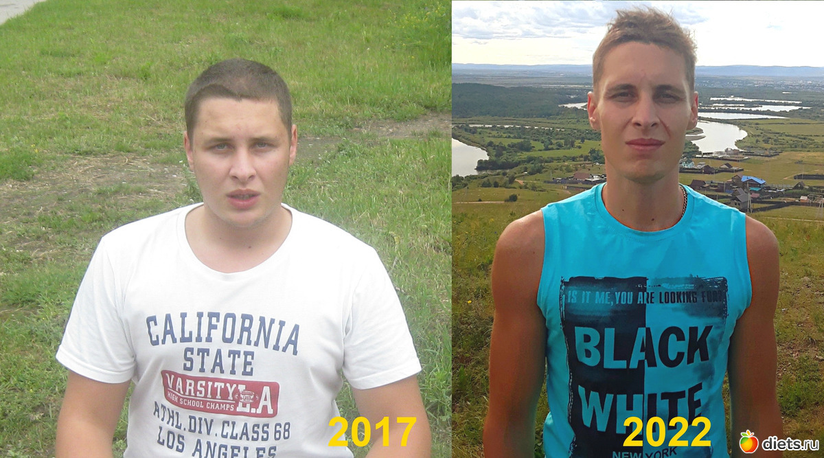 слева пухлик Чмоня весом под 90, спустя год -25% веса