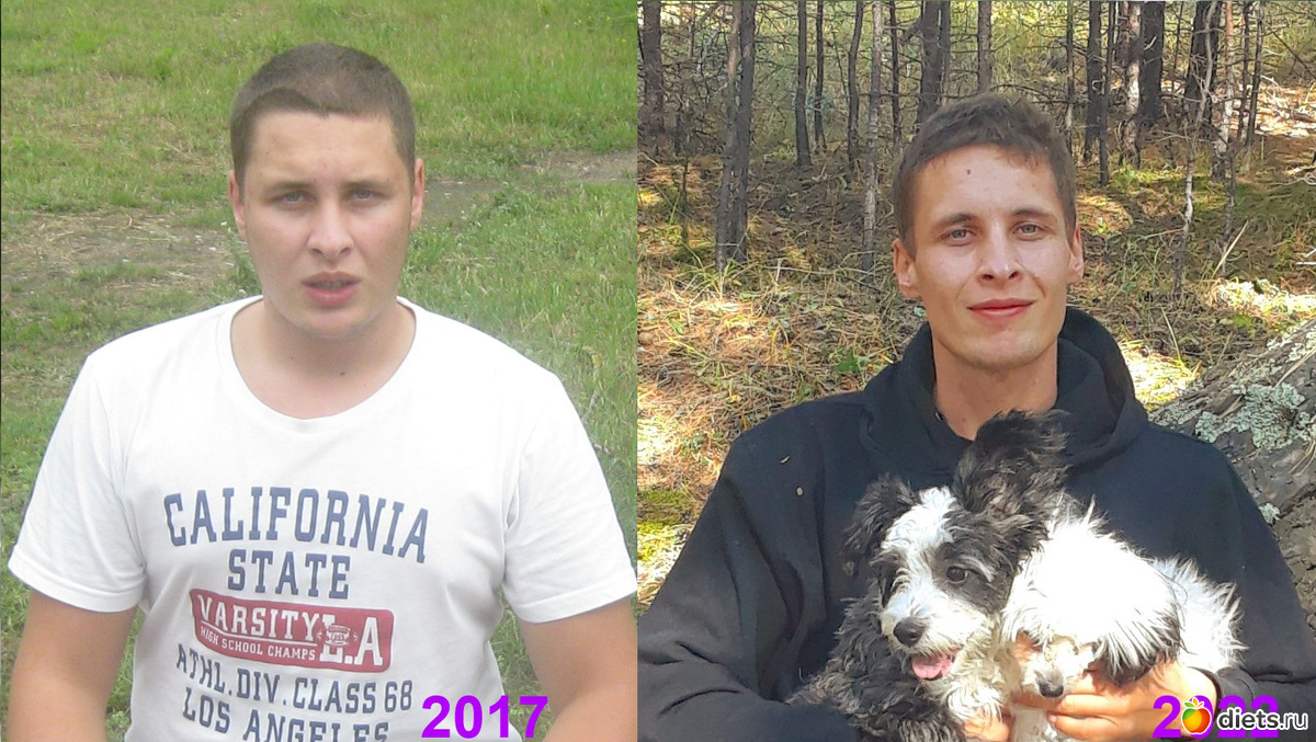 слева пухлик Чмоня весом под 90, спустя год -25% веса