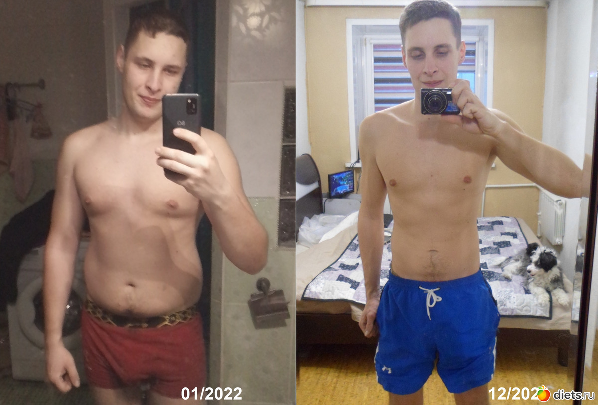 слева пухлик Чмоня весом под 90, спустя год -25% веса