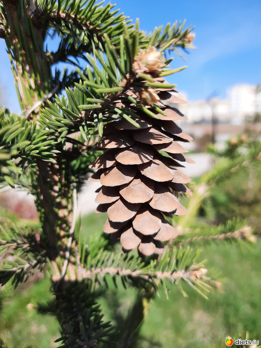 такая крсивая шишка уже на такой мааленькоё ёлочке