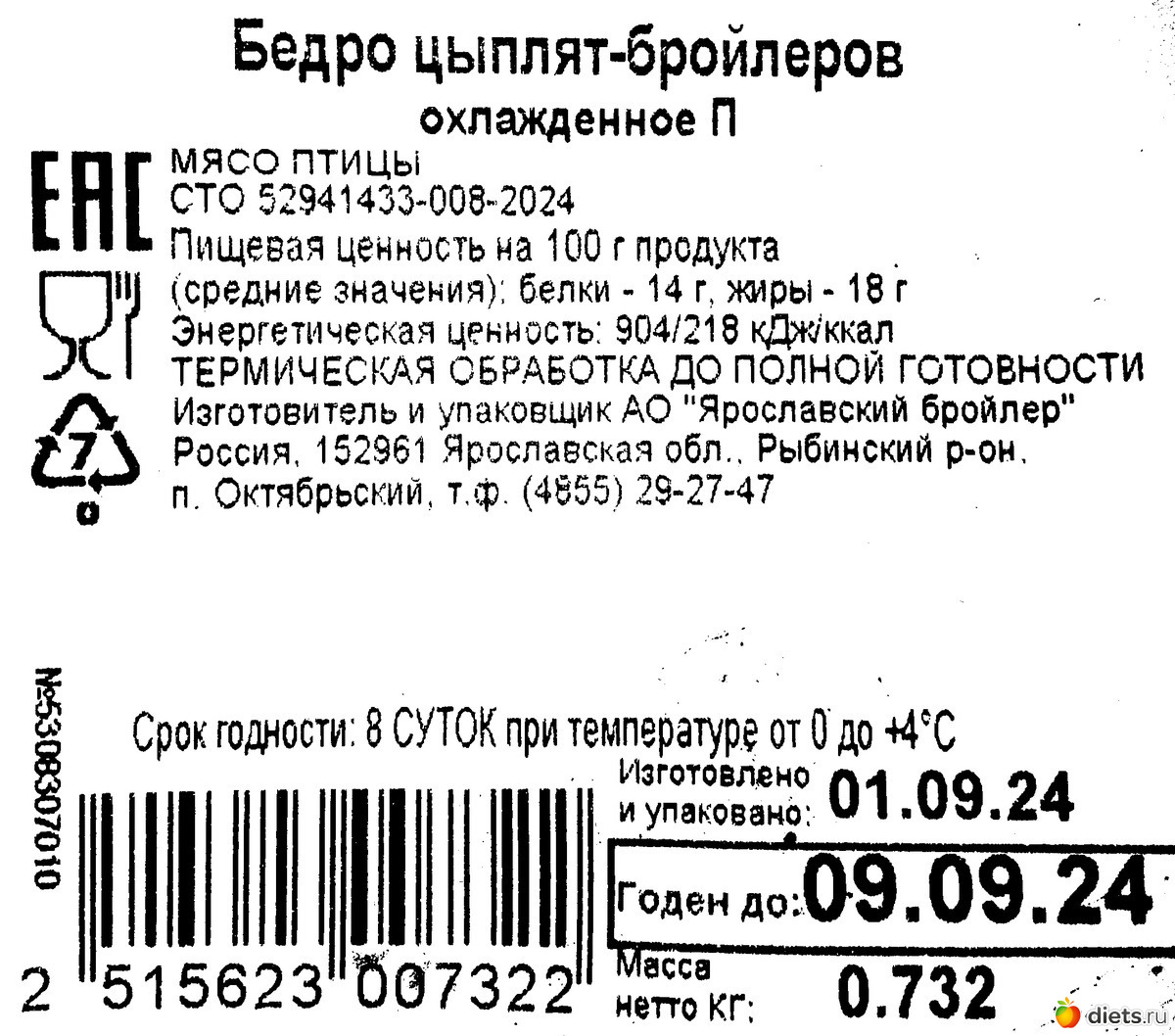 Изготовитель и упаковщик АО "Ярославский бройлер"