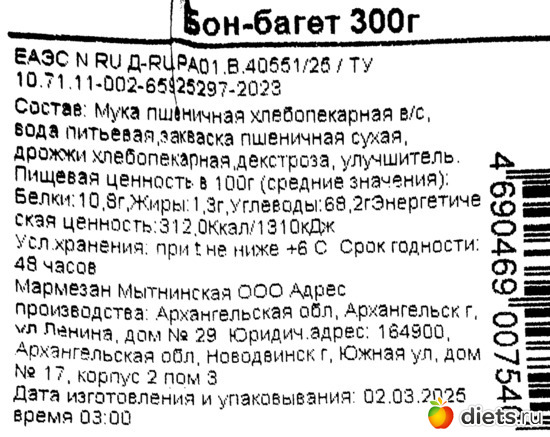 Белки: 10,8г, Жиры:1,3г, Углеводы: 68,2 г