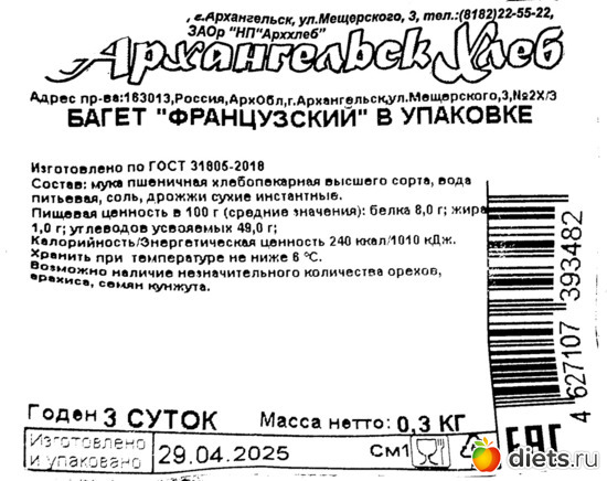 БАГЕТ "ФРАНЦУЗСКИЙ" В УПАКОВКЕ