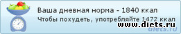 Основной обмен веществ — 1840 ккал в сутки Чтобы похудеть, употребляйте 1472 ккал