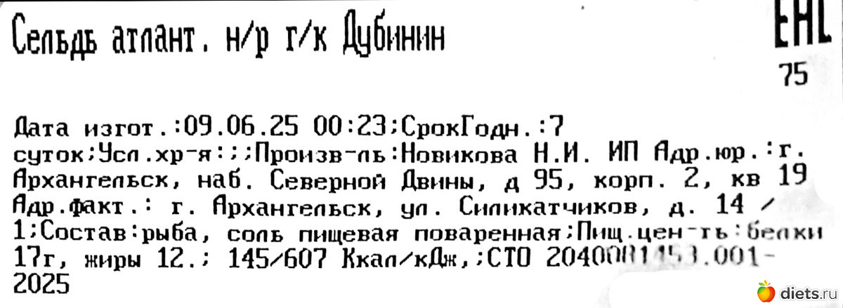 Пищевая ценность: белки 17г, жиры 12.: 145/607 Ккал/кДж,