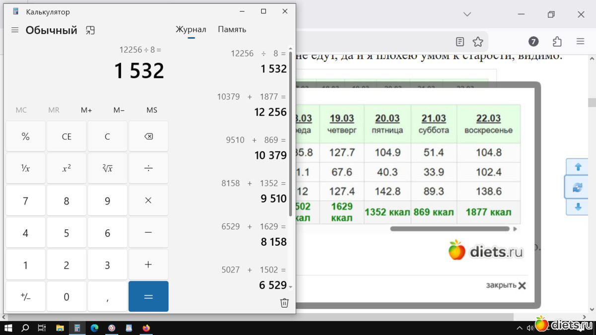 «1 532 ккал в день среднее за неделю»