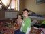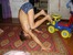 в маечке и носочках старшего товарища (мальчика 4 лет)