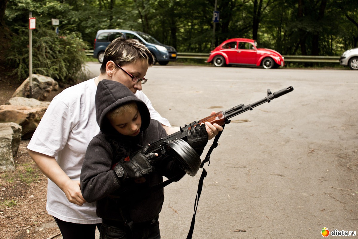 Сыну помогаю подержать автомат., альбом: DINANT.Бельгия. Семейный отдых.