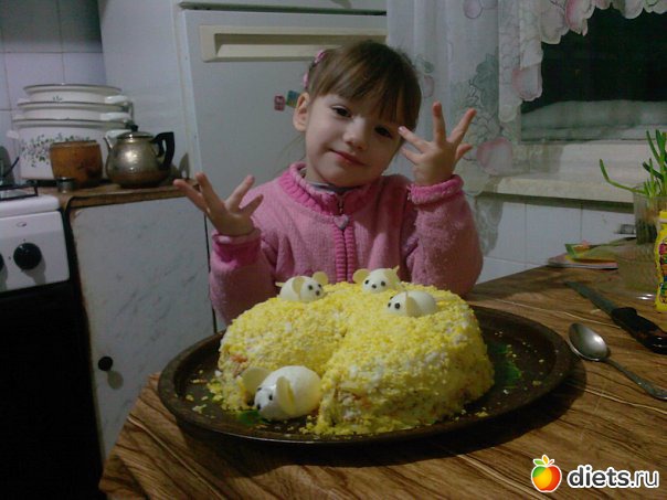 А у нас это мимоза. По моему единственный салат, который дочка ест