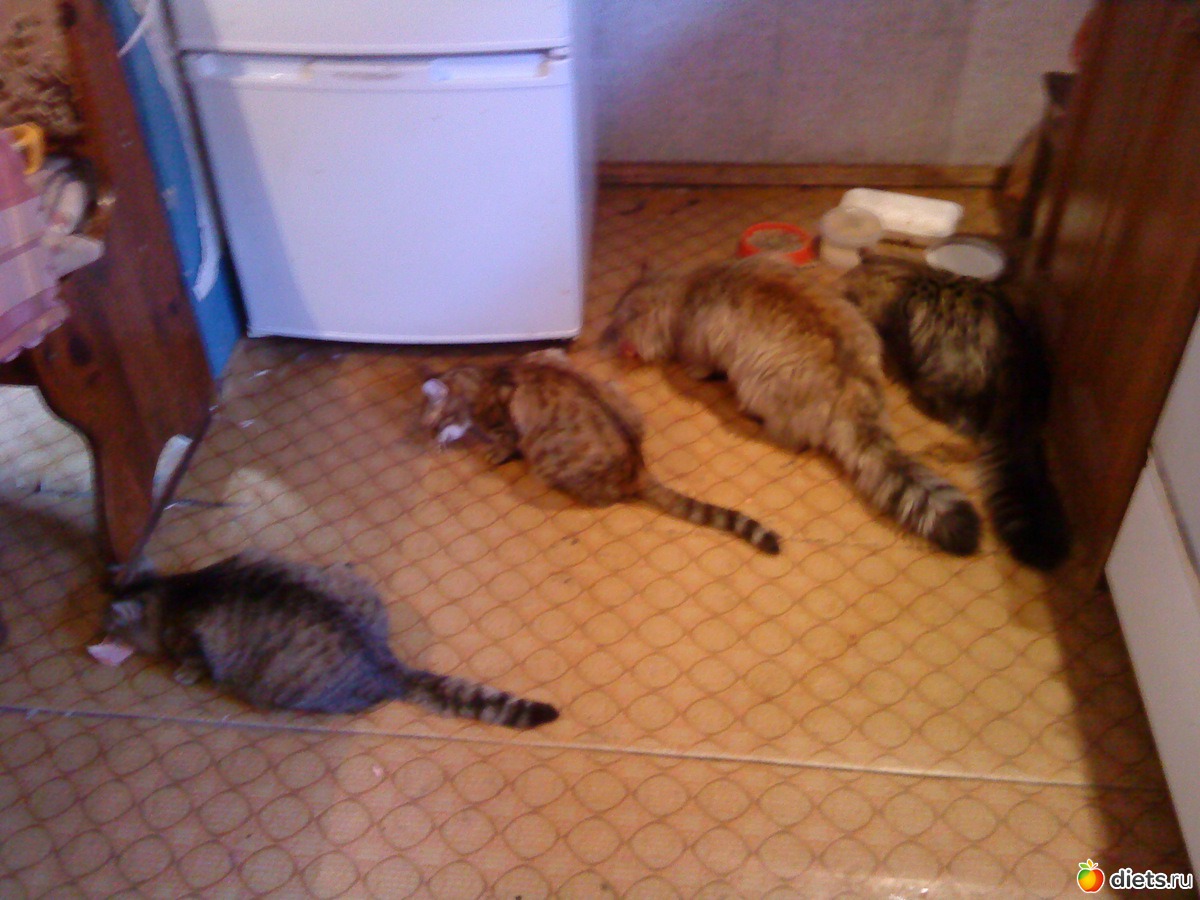 моя старшая дочь спит с "грелками"(бабулины коты, дети наших Машки и Мурки)