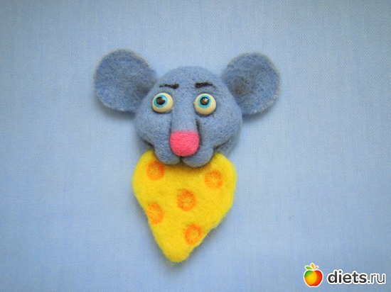 Мышь с сыром №2, альбом: Валяные магниты на холодильник.