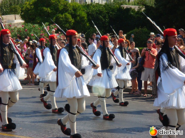 Эвзоны, воскресный парад перед парламентом в Афинах