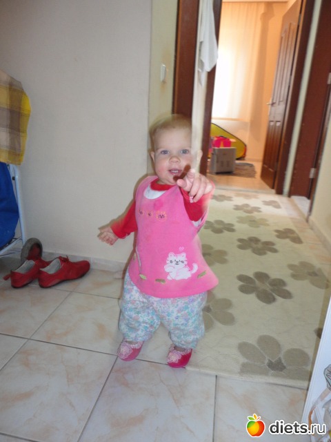 в маечке и носочках старшего товарища (мальчика 4 лет)
