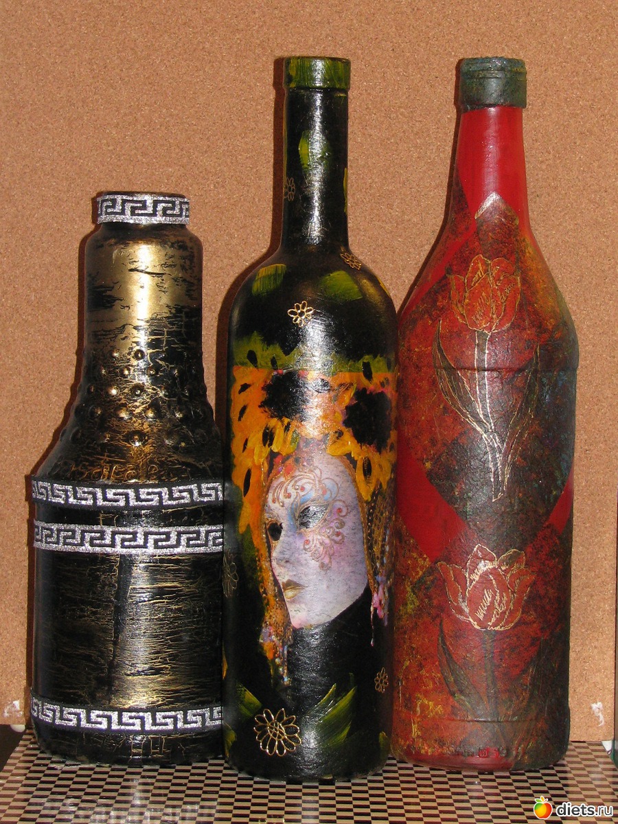 Ира,замечательные работы! Это декупаж с салфетками или вы сами рисовали на бутылках?