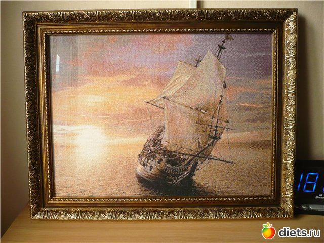 Парусник. Вышит в подарок мужу на День Морфлота.