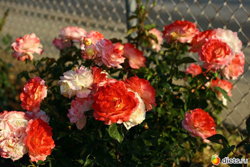 Розовый куст и гортензия