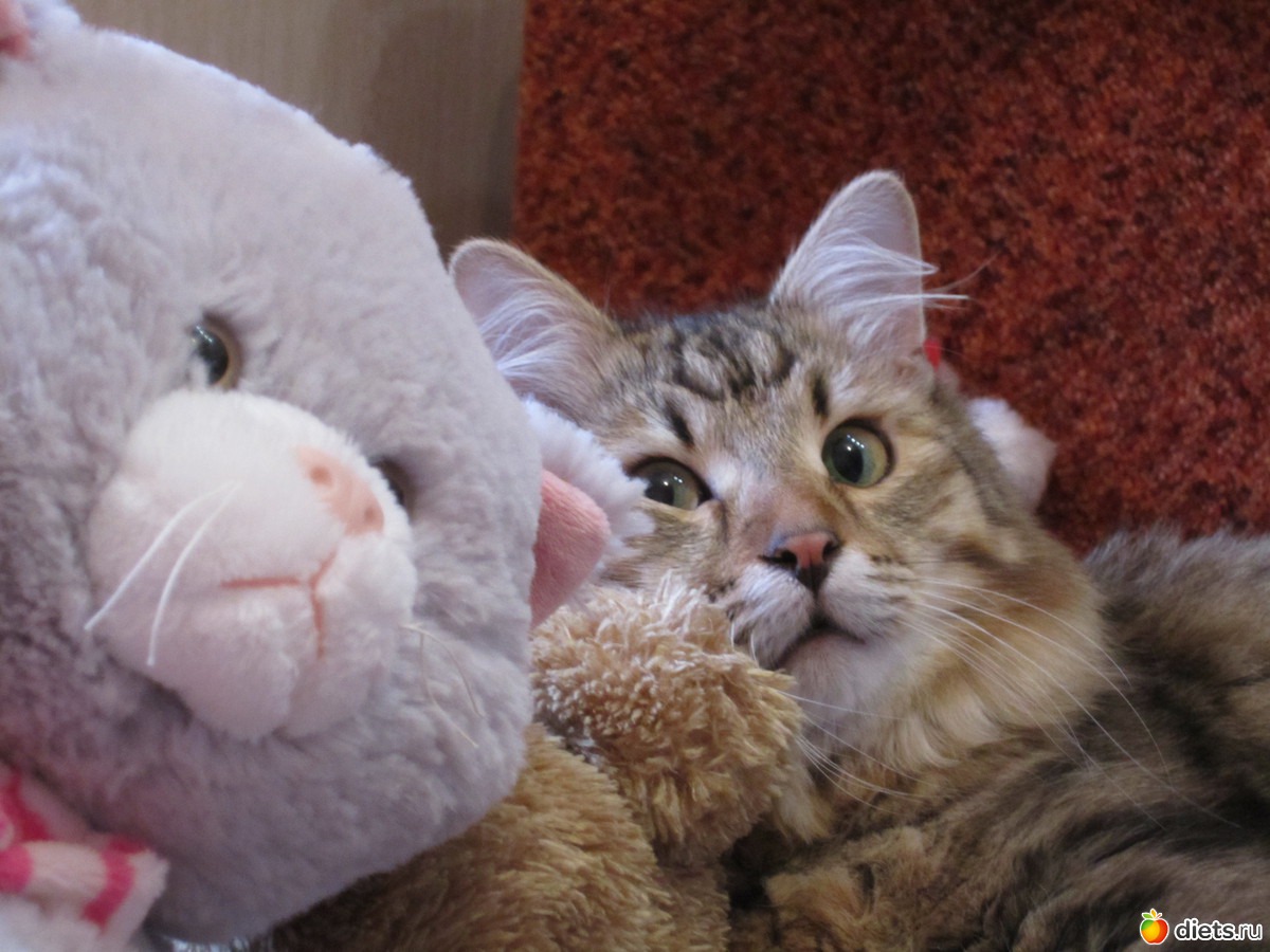 Я тоже своим кучу подарков на новый год купила - удочку с пушком, жидкость протирать глаза, новые миски, травку (не ели).