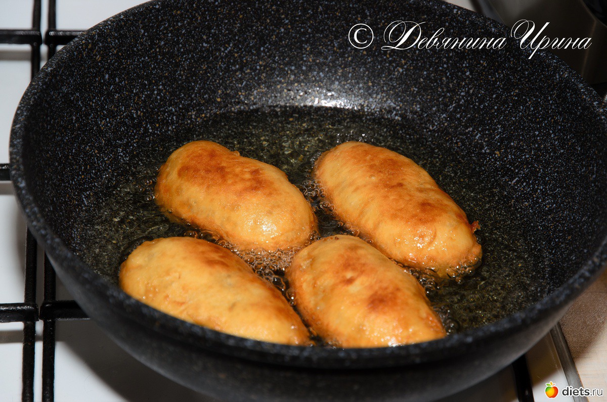 Сформировать пирожки с любимой вами начинкой и жарить в большом количестве масла.