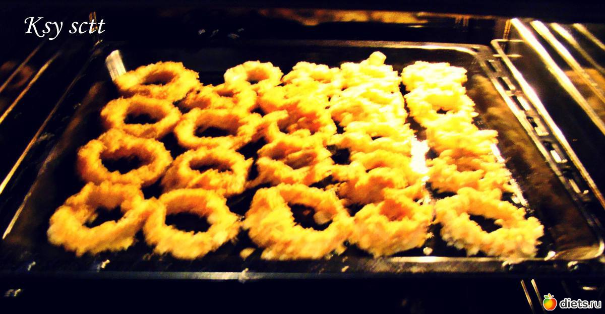 6. Вывалять кольца в миске с мукой, а затем в миске с тестом, дать тесту немного стечь и обвалять колечко в чипсах.