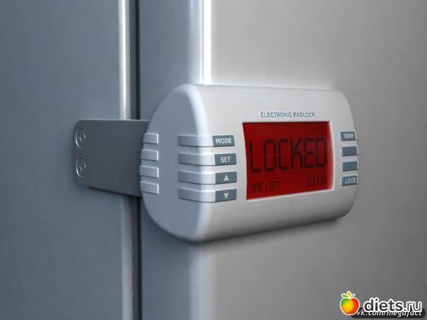 Замок, блокирующий дверцы холодильника в заданный промежуток времени., альбом: Смешное