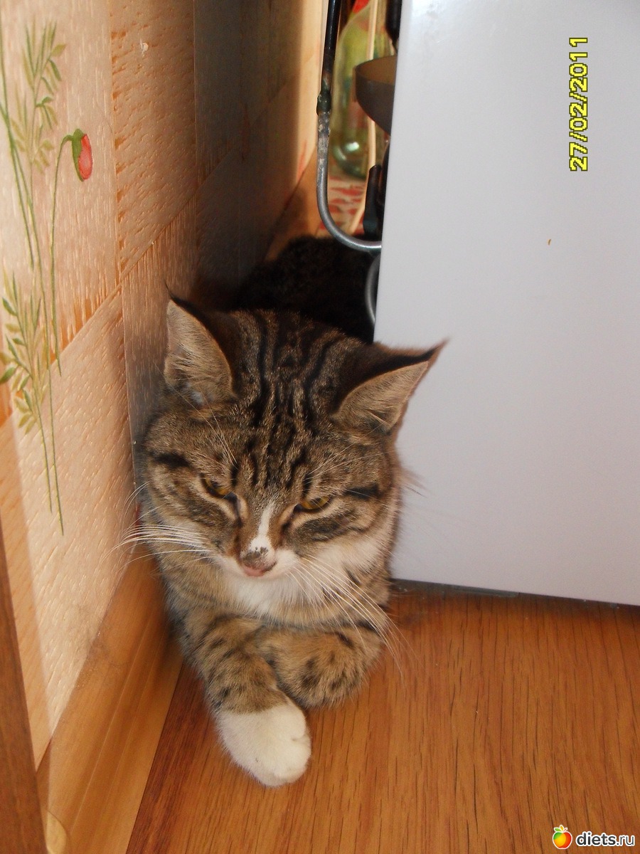хорошо пристроилась за холодильником, искали очень долго, альбом: Котейка