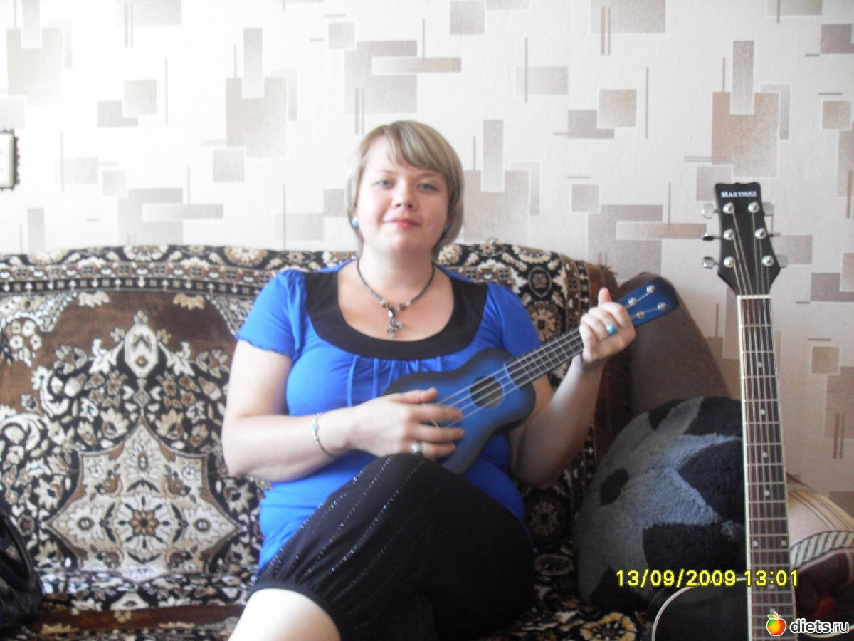 Гармоничная девушка! Все под цвет! Гитара к кофточке очень подходит!