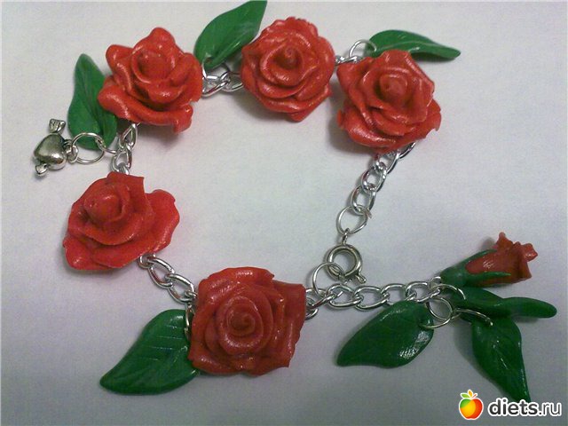 браслет из комплекта "Розы", альбом: украшения из полимерной глины на заказ