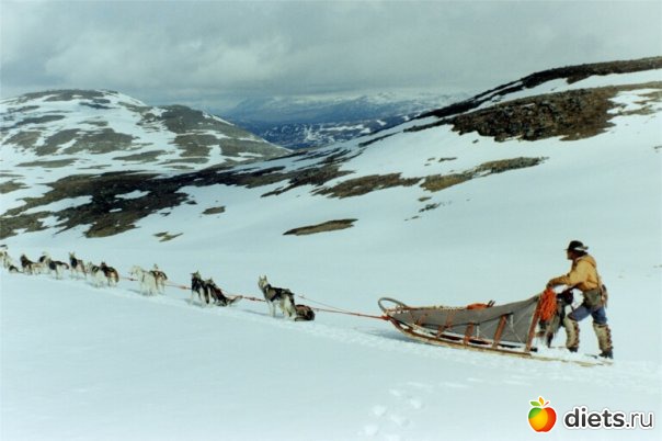 Агун и Берри запряженные в нарты.