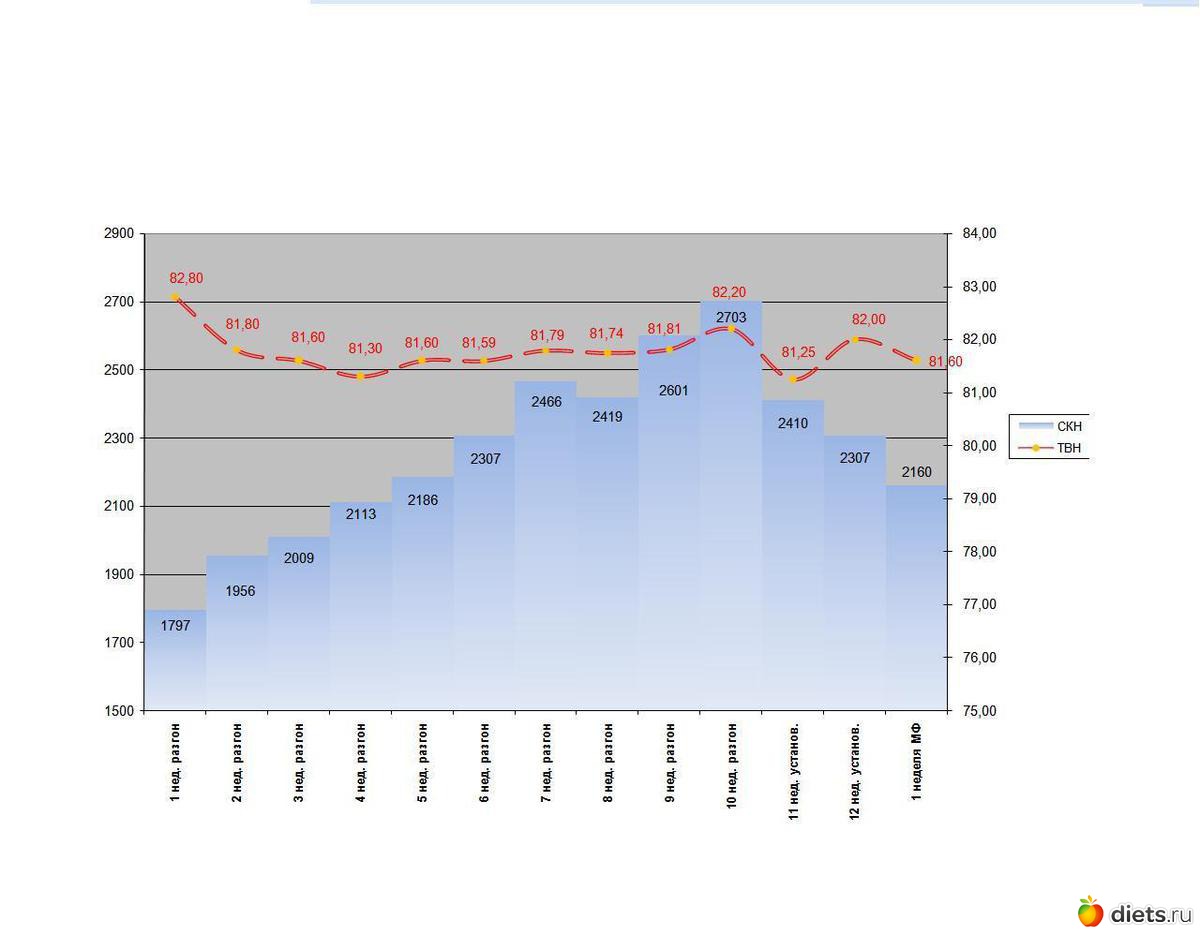 Динамика веса и калорийности 11 апр 2012, альбом: Мои достижения