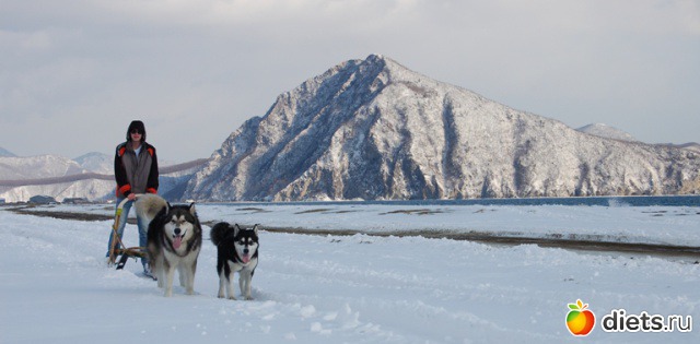 Агун и Берри запряженные в нарты.