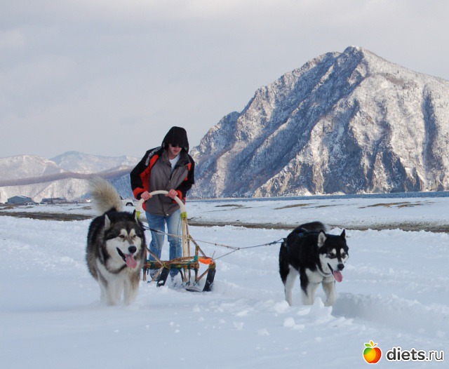 «Агун и Берри запряженные в нарты.»