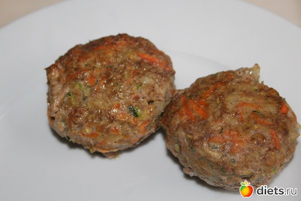Натереть морковь, цуккини и лук на крупной терке, перемешать с фаршем,яйцом и специями.