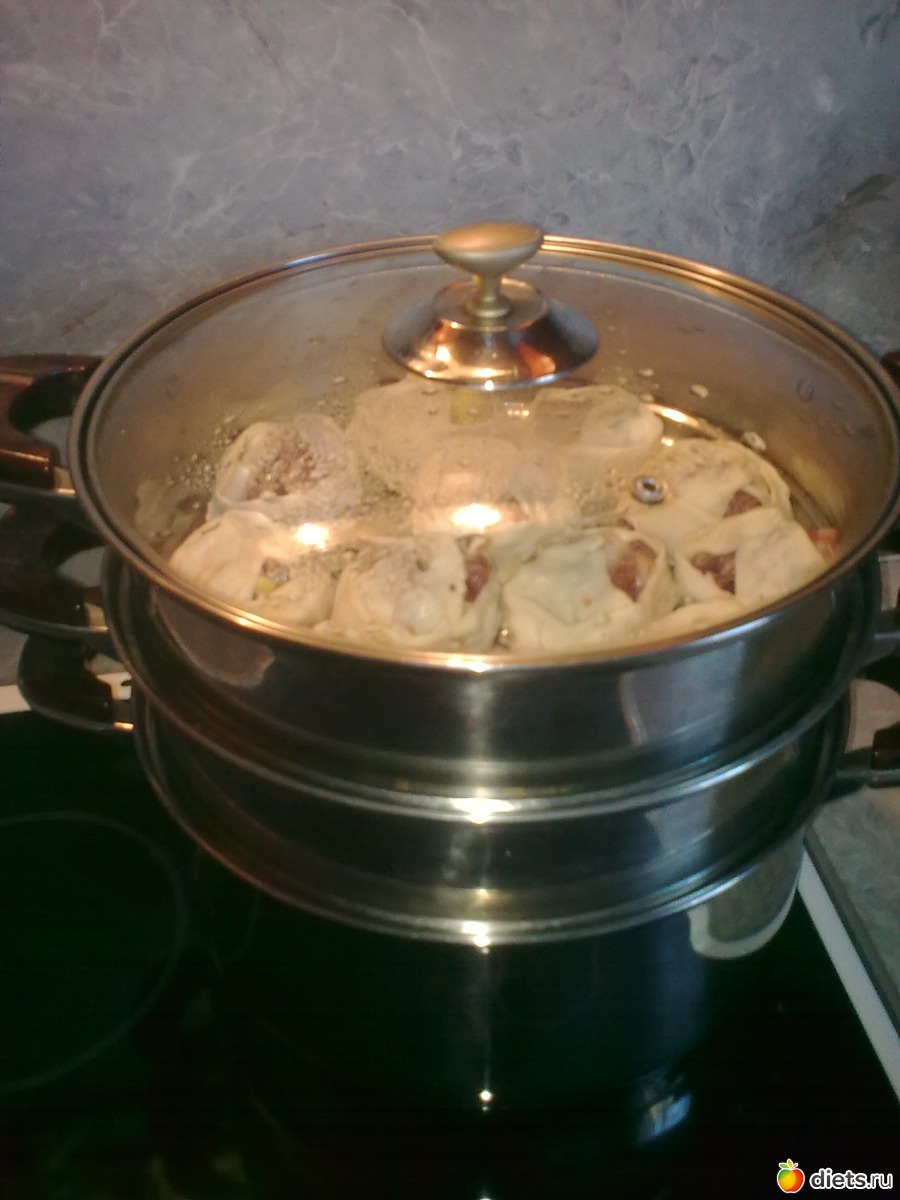 Готовлю манты и котлеты.