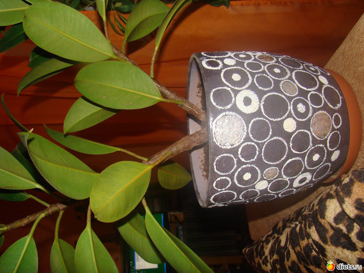 Я намазала обезжиренный горшок клеем ПВА и тут же обсыпала речным песком. Он высох, стряхнула лишнее, а дальше... Простор фантазии! Такую примерно расцветку горшка я в журнале увидела и сделала.