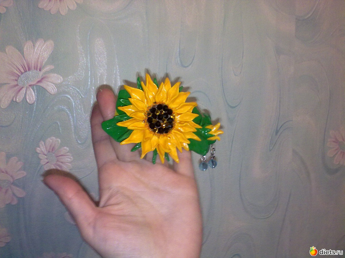 заколка "подсолнух"для виолетты, альбом: украшения из полимерной глины на заказ