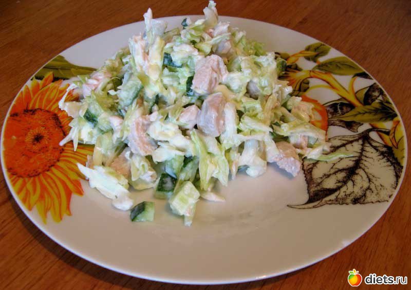 Для приготовления салата с курицей и капустой капусту тонко порезать.