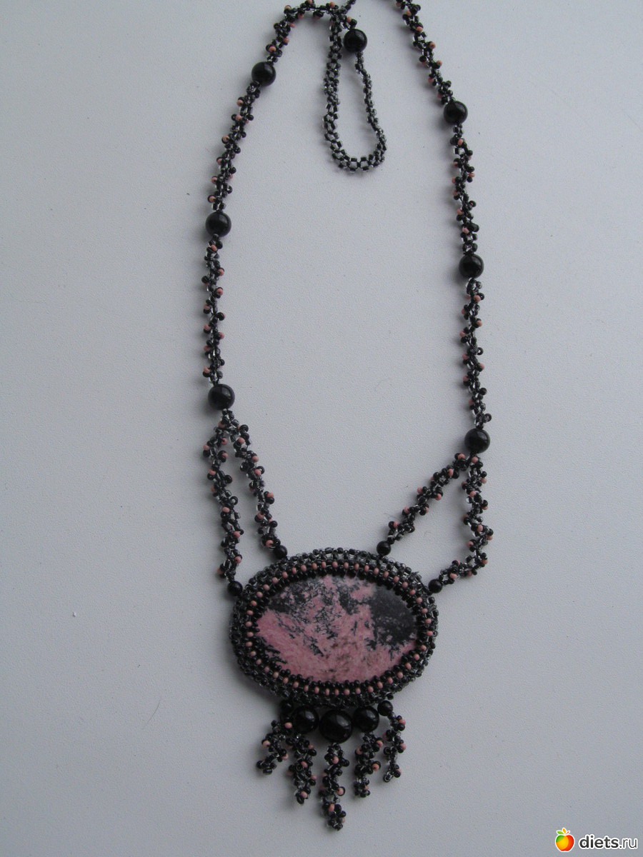 Кулон с родонитом и агатом, альбом: Эксклюзив из бисера и не только