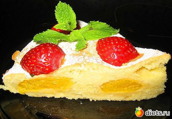 5. Залить абрикосы оставшимся тестом и выпекать 40-45 минут.